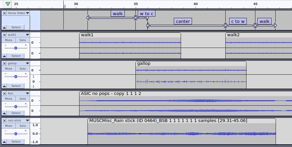 Today I’m going to show how to use Audacity’s Region Labels to build an audio track that synchs with a video. In the next post, I’ll go through some commands for adding audio to a video with Ffmpeg.
